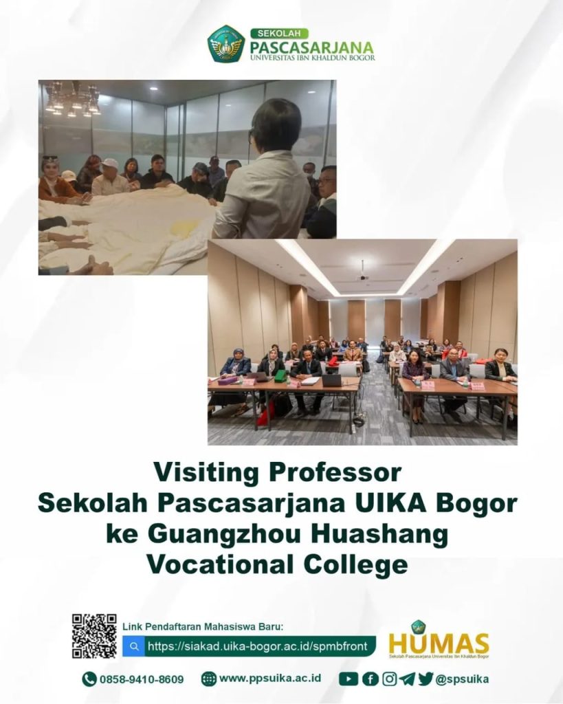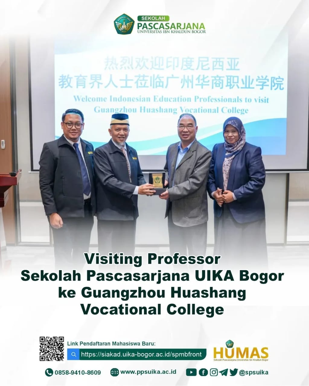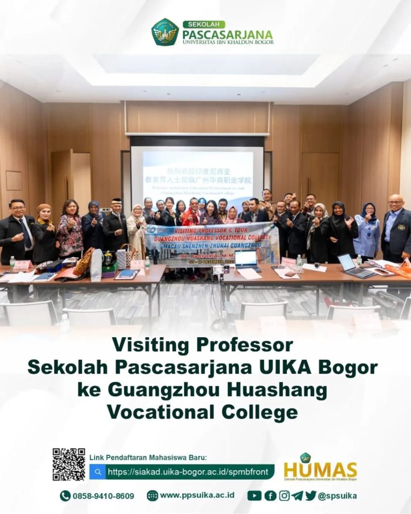 Guangzhou, Tiongkok – Pascasarjana Universitas Ibn Khaldun (UIKA) Bogor melaksanakan kegiatan Visiting Professor ke Guangzhou Huashang Vocational College sebagai bagian dari penguatan jejaring internasional dan implementasi visi globalisasi pendidikan pascasarjana.