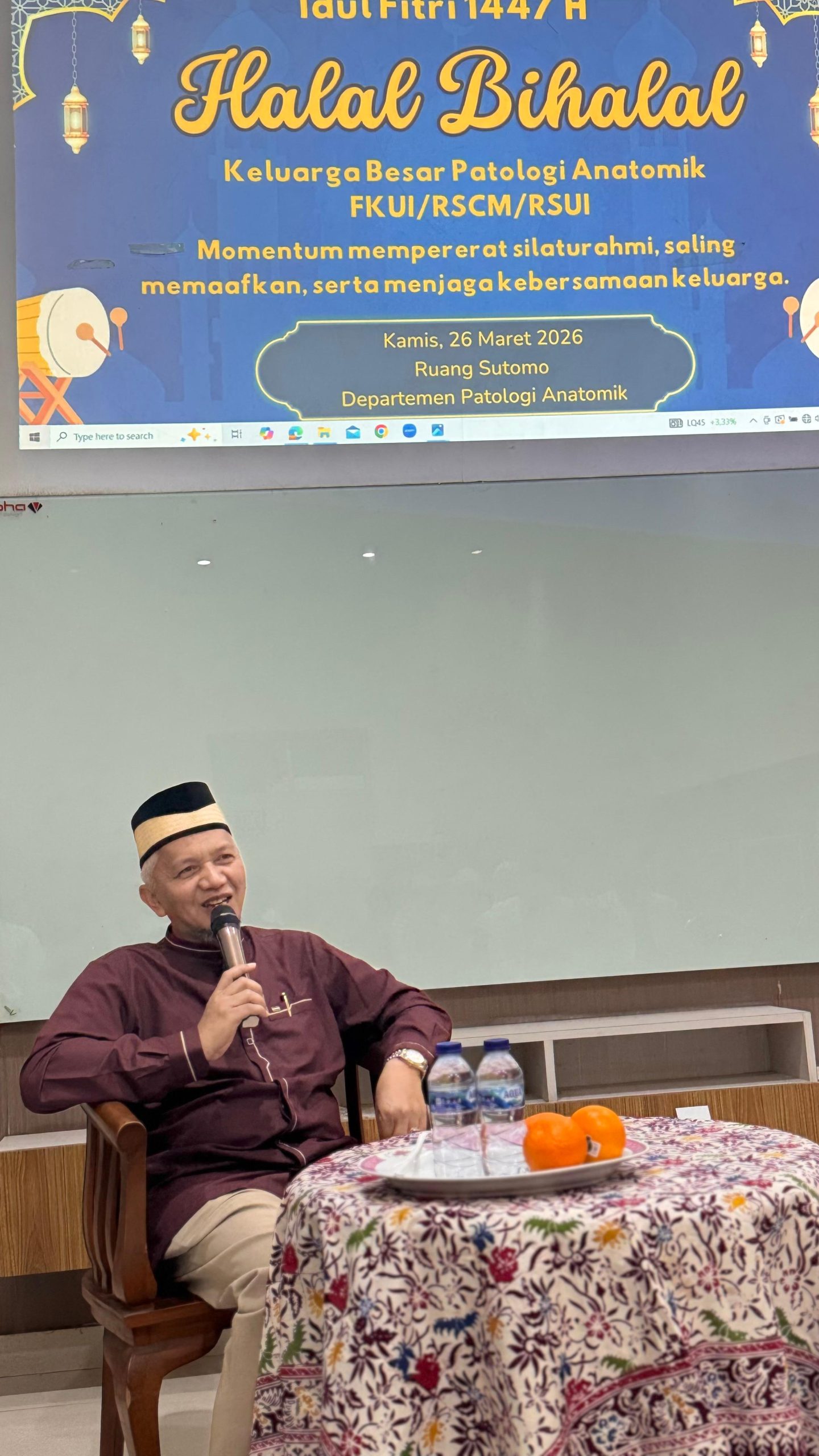 JAKARTA – Keluarga Besar Departemen Patologi Anatomik FKUI/RSCM/RSUI menyelenggarakan kegiatan Halal Bihalal Idul Fitri 1447 H pada Kamis, 26 Maret 2026. Bertempat di Ruang Sutomo, acara ini menjadi momentum hangat untuk saling memaafkan dan menjaga kebersamaan keluarga besar akademisi dan tenaga medis.